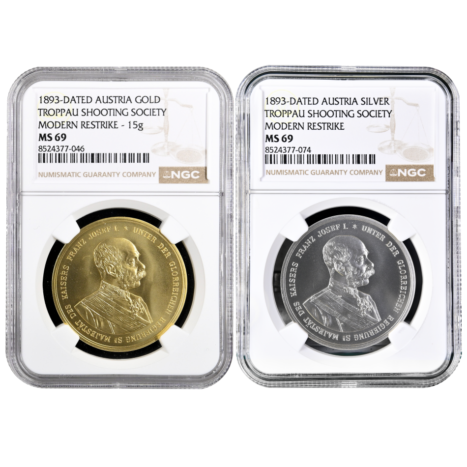 Zlatá a stříbrná medaile 1893/2024 – Střelecká společnost Opava (Troppau) – NGC MS 69