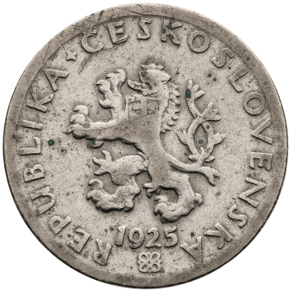 Dvacetihaléř z roku 1925 patří mezi oběžné mince první Československé republiky. Ražen byl ve státní mincovně v Kremnici.