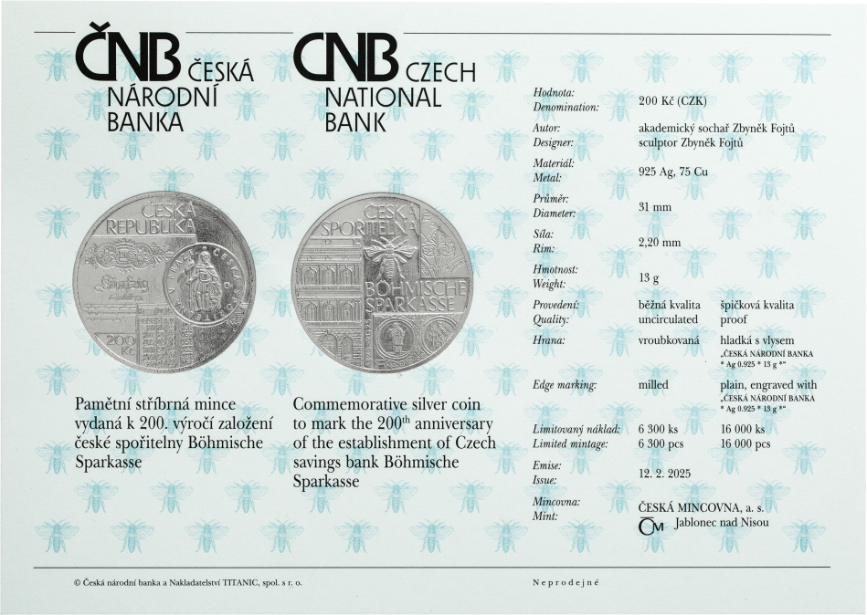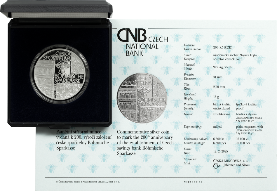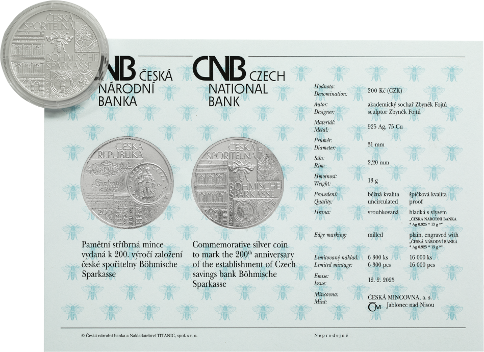 Stříbrná pamětní mince 200 Kč 2025 – Založení české spořitelny Böhmische Sparkasse