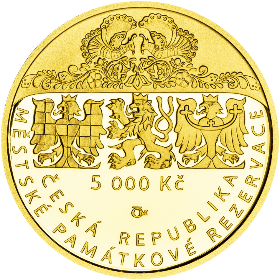 Zlatá mince vydaná Českou národní bankou v nominální hodnotě 5.000 Kč. Město Štramberk z cyklu Městské památkové rezervace.