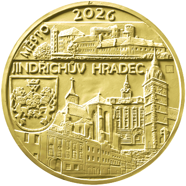 Zlatá pamětní mince vydaná Českou národní bankou v roce 2026. Věnována historickému městu Jindřichův Hradec v rámci emisního cyklu Městské památkové rezervace 2026–2030.